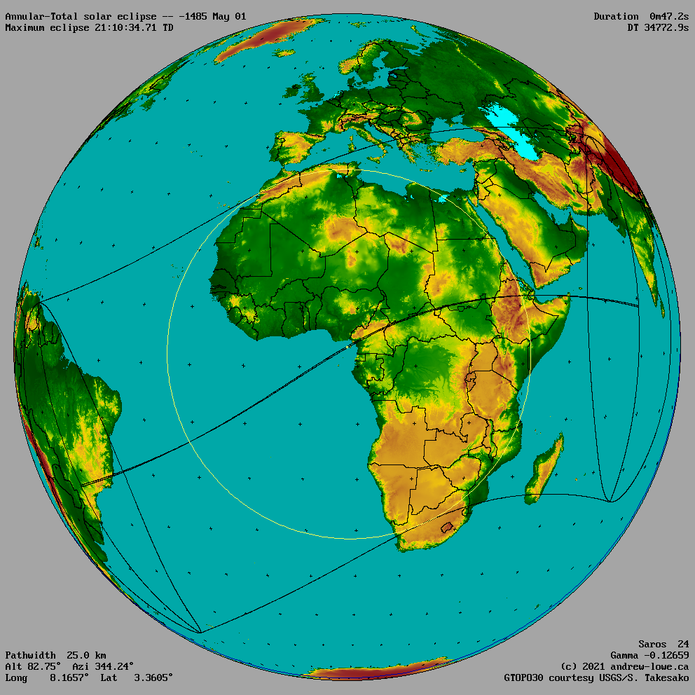 Solar Eclipse Maps -1600 to -1501 -1400 to -1301