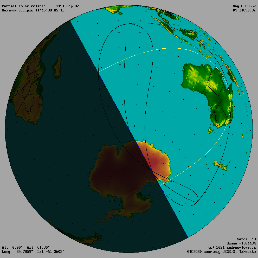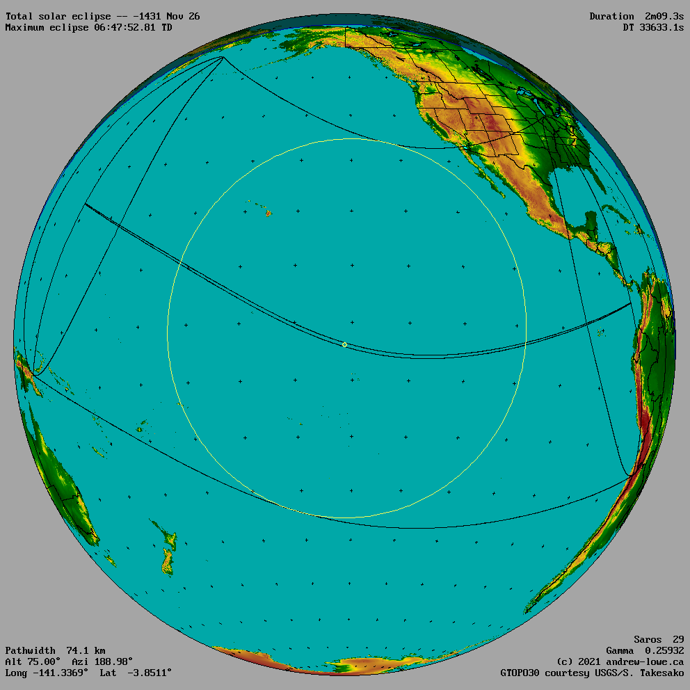 The paths of all solar eclipses are tabulated sequentially, by decade and year.