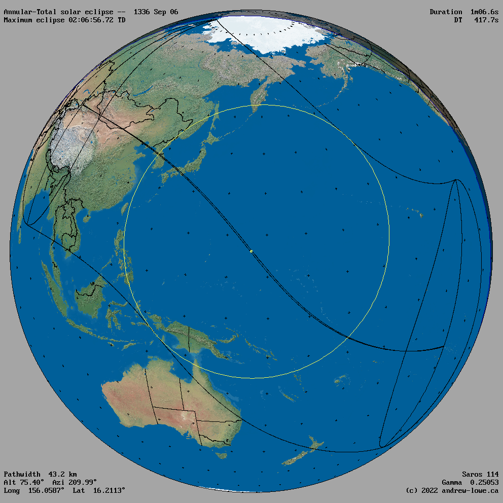 Pathwidth: The width of the shadow path for central eclipses at the time of maximum eclipse, in km. If the width exceeds 999.9 km, its value is replaced with 999.9 km.